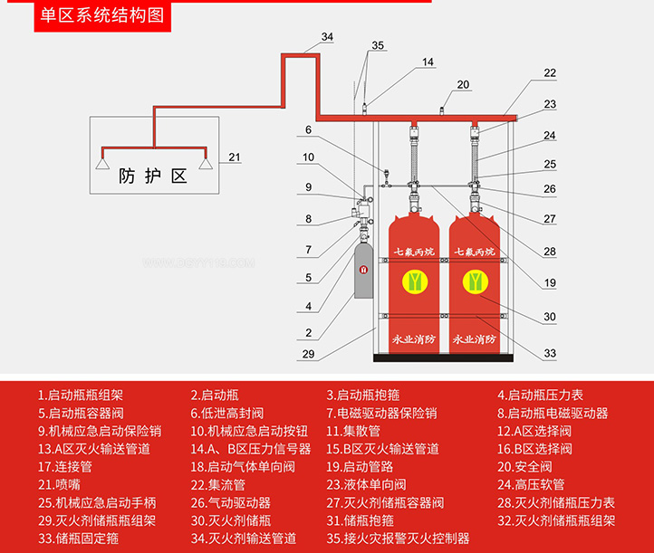 它們之間的滅火方式都是一樣的,要求的噴放時間也都一樣,唯一的區(qū)別就是滅火劑鋼瓶的放置位置不同: